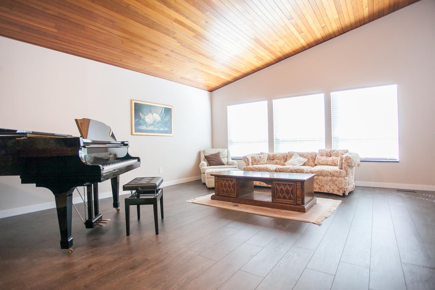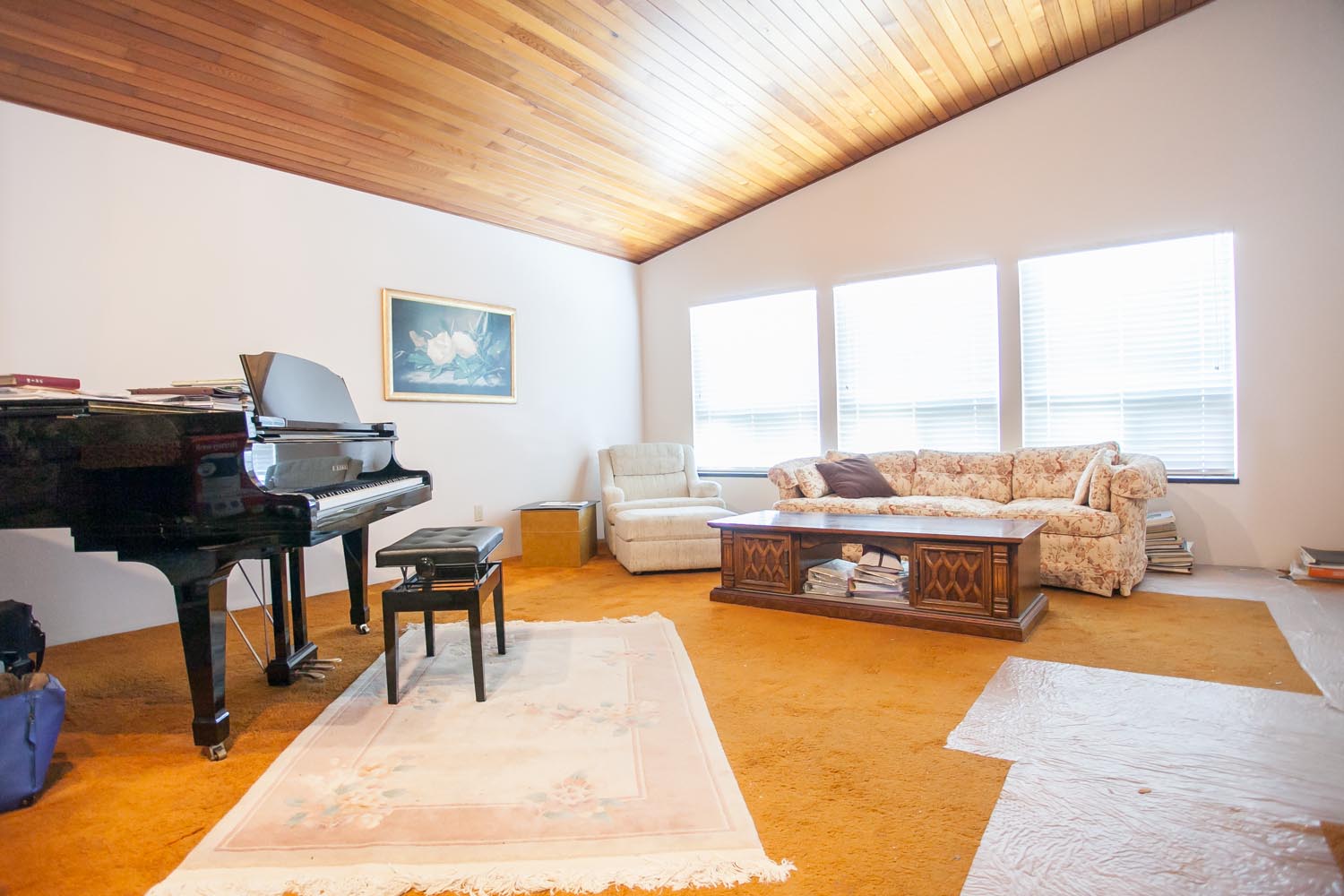 As for the flooring, much of the house had a brown-orange carpet. The carpet was taken out and replaced with brand new wood laminate flooring. On the second floor, about 1000 square feet of wood laminate flooring was installed.