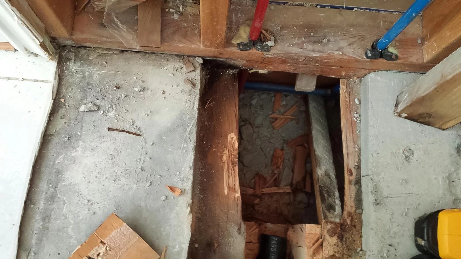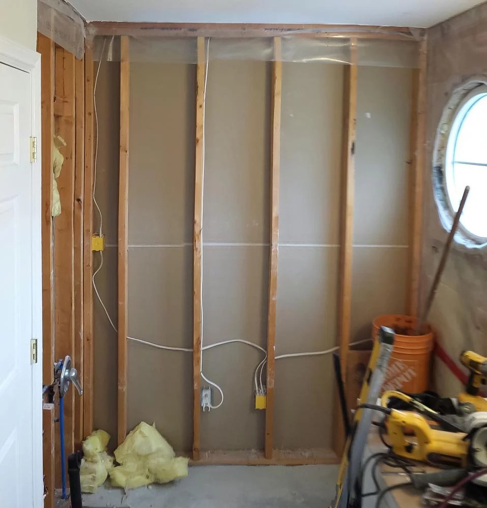 After the original tiling and bathtub were stripped out, the plumbing and electrical were upgraded to prevent any leaking. A new high quality shower head and tiling were completed after the new drywall was put up.