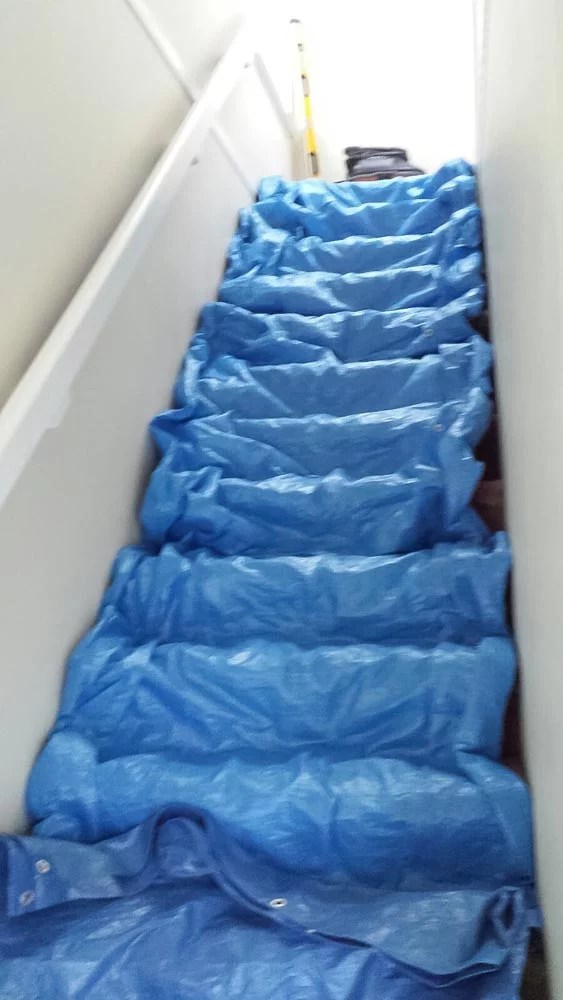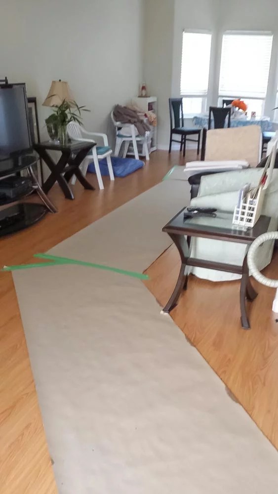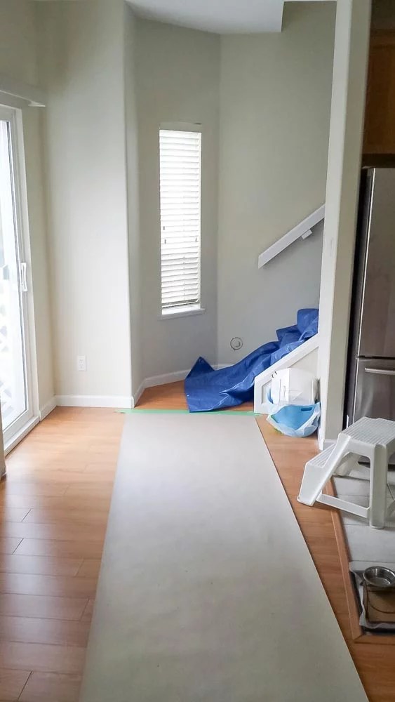 The bathroom being on the third level, we made sure that their stair carpet was kept clean during this process because we had lot of foot traffic going in and out of the townhome, as because material were brought in and out, and tiles needed to cut the tiles outside.
